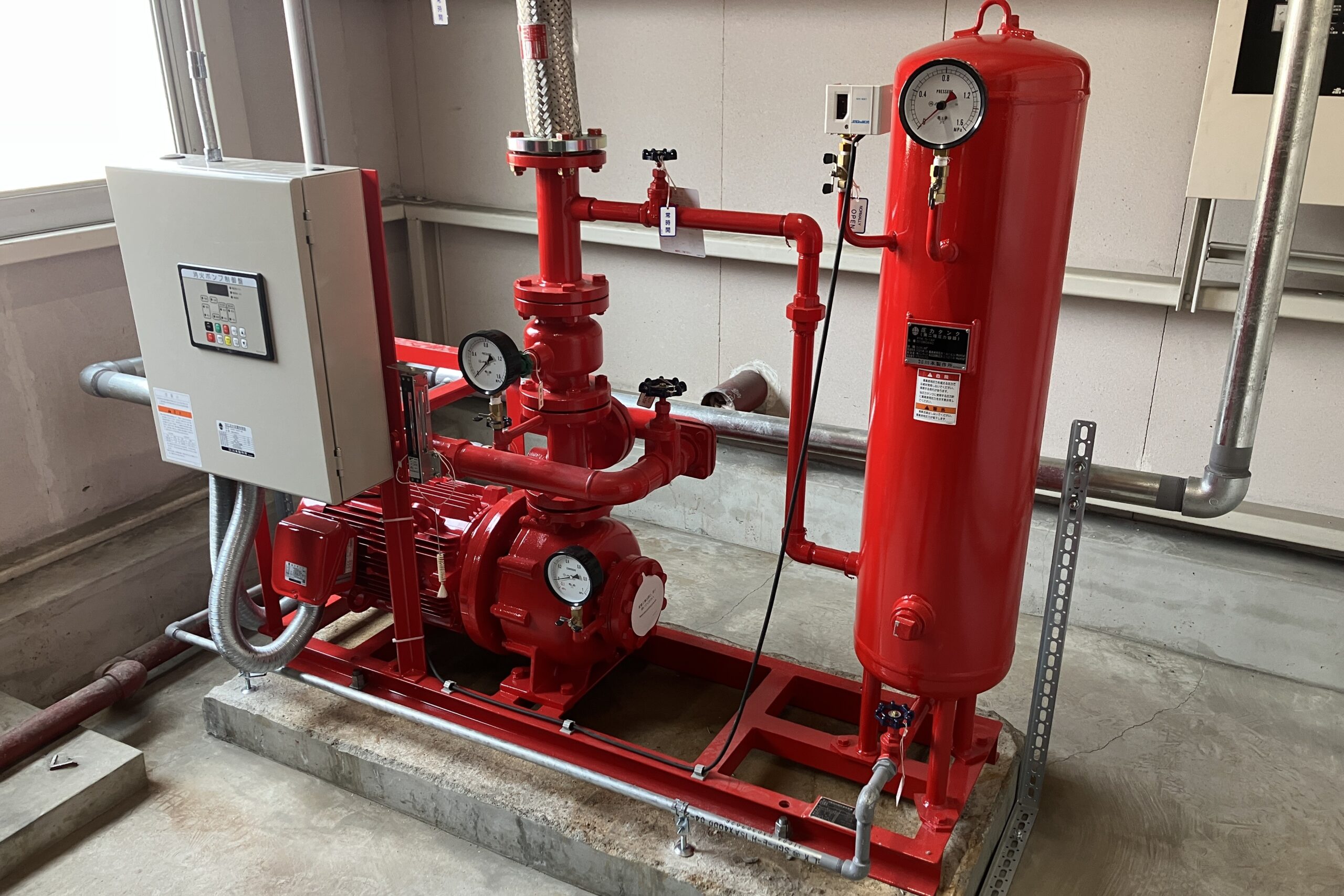 屋内消火栓設備建物内部で火災の初期から中期にかけて、居住者や従業員が消火活動を行うための設備。ホース、ノズル、水供給ポンプなどで構成されます。